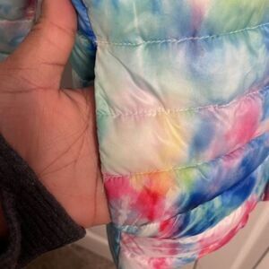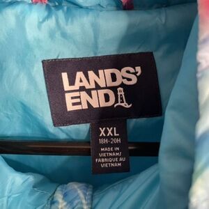 Lands’ End Kids ThermoPlume Packable Hooded Jacket XXL Husky Rainbow Tie Dye