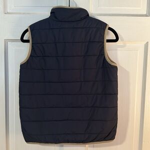 Lands End Kids Youth Puffer Fleece Lined Vest Size 7 navy/tan outdoor w/pockets