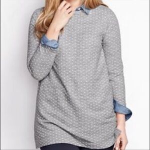 Land’s End Knit Swiss dot tunic top or mini dress navy blue green dots. Easy to layer over or under. Can be worn as tunic or mini dress. 100% cotton in barely worn condition.
