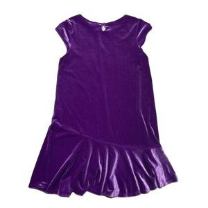 Lands End L 14 purple velvet dress with asymmetrical, drop waist and ruffled hem.