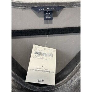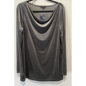 Lands End L 14-16 Women's Velvet Long Sleeve Drape Neck Tunic Grey NWT Holiday