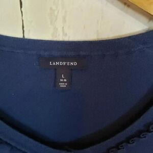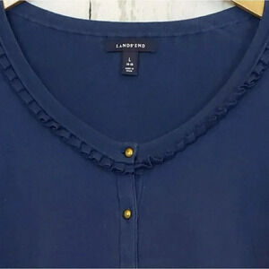 Lands End Navy Cardigan with Gold buttons and ruffle colla