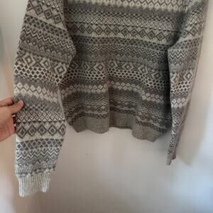 In good condition but runs small. Tagged a size Large but fits like a size Medium. May have shrunk in the wash but wool is still soft and not “crunchy”.