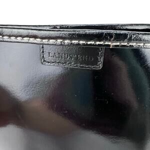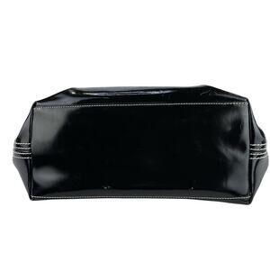 Lands' End Large BLACK PATENT GENUINE LEATHER SHOULDER BAG SHOPPER TOTE FRONT POCKET