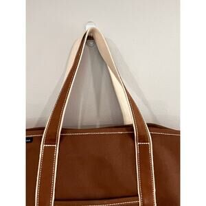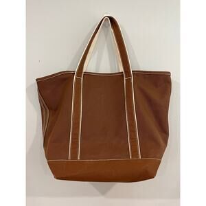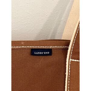 Lands’ End Large Canvas Tote Bag Brown Zip Top Heavy Duty Travel Beach Bag