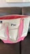 Land's End Large Zippered Canvas Tote pockets Pink Trim initials Pai Long Handle