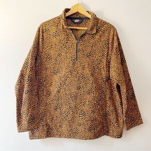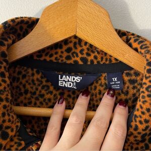Lands End Leopard Print Pullover Fleece Zip Size 1X Brown Black Animal Print