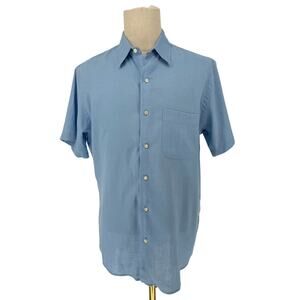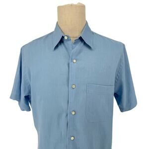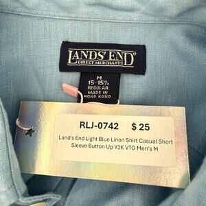 Land's End Light Blue Linen Shirt Casual Short Sleeve Button Up Y2K VTG Men's M