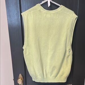 Chic light green V-neck sweater vest. Ideal for layering. Slightly oversized