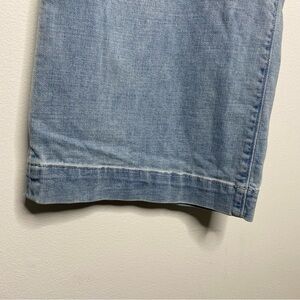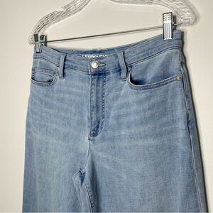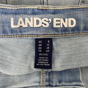 Lands' End Light Wash Wide Leg Jeans. Classic five pocket styling with wide hem. Please note these are petite length jeans. Excellent condition, worn twice. Stock photo included to show fit.