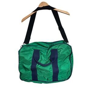 Lands End Lighthouse Vtg USA Made Duffle Shoulder Bag Travel Green Weekender