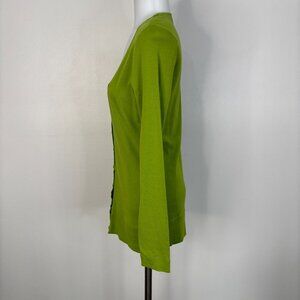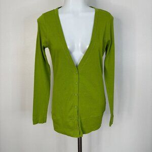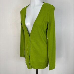 Lands' End Lightweight Cardigan XS Green Deep V-Neck Button-Front Cotton Women's