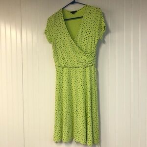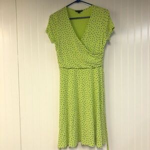 Lands' End Lime Green Polka Dot Dress VNeck Belted Size 6-8 Short Sleeve