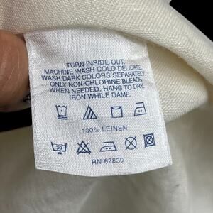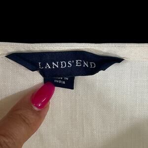 This Lands’ End Linen Beaded Top in size L (14-16) is a stylish and versatile piece perfect for various occasions such as travel, casual outings, or beach trips. The cream color and bohemian vibe make it a great option for summer, fall, or spring seasons. Made of 100% linen, this lightweight and breathable top features a V-neckline, long sleeves with casual sleeves, and intricate beaded accents for added flair. The pullover closure and regular fit offer comfort and ease of styling, while the machine washable fabric ensures low maintenance. Ideal for women who appreciate classic yet trendy clothing.