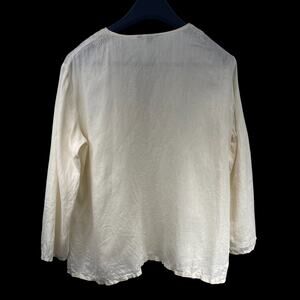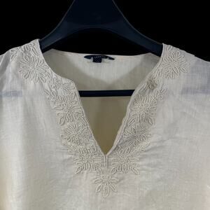 Lands’ End Linen Beaded Top Women Sz L 14-16 Cream Boho Festival Travel Beach