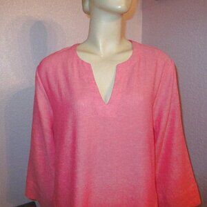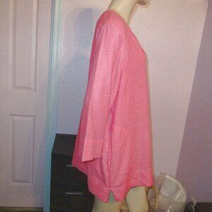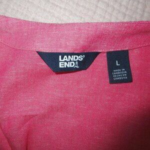 Lands' End Linen Blend Tunic Top Size L Pockets Bell Sleeves Lagenlook Coastal