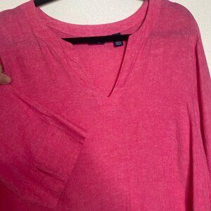Lands End Linen Blend Tunic Top Womens XL Pink V Neck 3/4 Sleeves Lightweight Be