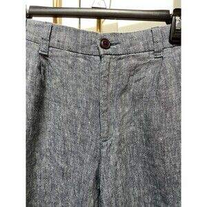 This listing is for a pair of Lands' End 100% linen pants in chambray blue. These are a women's size 8 high rise. They are in excellent pre-owned condition with no issues. These pants feature a front zipper and button, 2 front slash pockets and 2 sewn shut faux back pockets. The back has an elastic waistband. Please look over all pictures carefully before purchasing. It comes from a smoke free but pet friendly home. Feel free to message me with any questions. I ship within 24 to 48 hours after receipt of payment. All measurements are approximate and taken while garment was lying flat and unstretched.