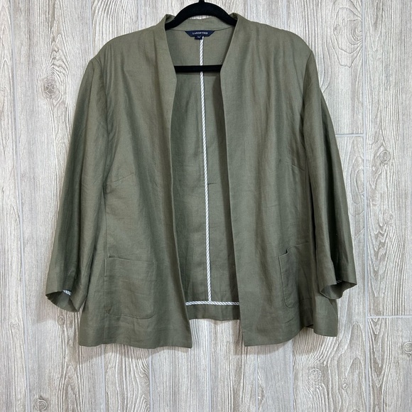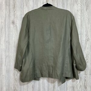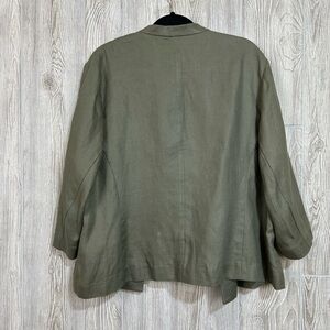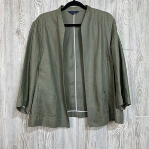 Lands End Linen Olive Green Open Front Boxy Blazer Jacket 20W