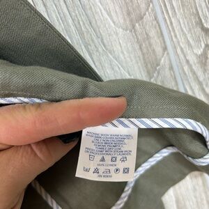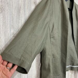 Lands End Linen Olive Green Open Front Boxy Blazer Jacket