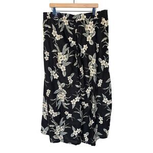 Land's End linen palazzo pants are NWT and no flaws noted. They feature a white tropical flower print against a black background, and have deep side vent pockets. No pockets in back. These pants will both look and feel great with their loose, flow-y, colorful design. Measures app'x: 19.5 inches across waist (but will stretch out a few inches,) 12 rise and 30 inseam.