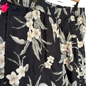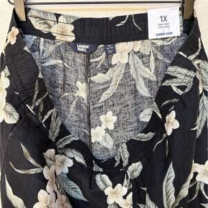 Land's End Linen Palazzo Pants with Gardenia Print, Elastic Waist, Pockets sz 1X