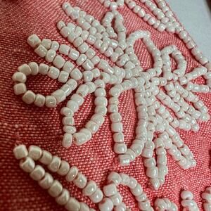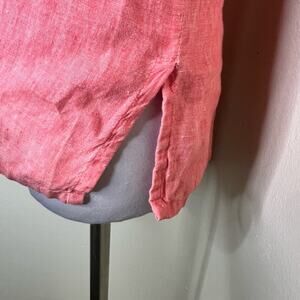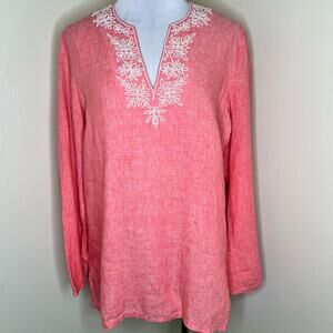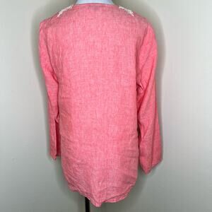 Lands' End Linen Tunic Top Medium Womens Pink Woven Beaded V-Neck Lagenlook Chic