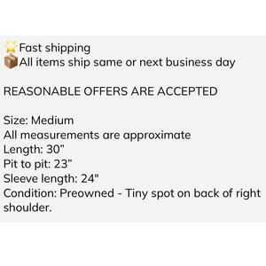 Condition: Preowned - Tiny spot on back of right shoulder.