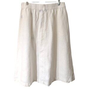 Lands' End Linen White A-Line Midi Skirt with Buttoned Detail Size 10