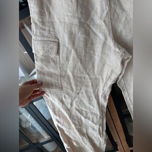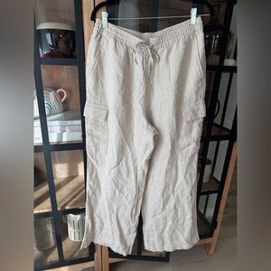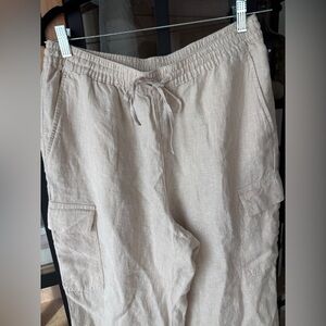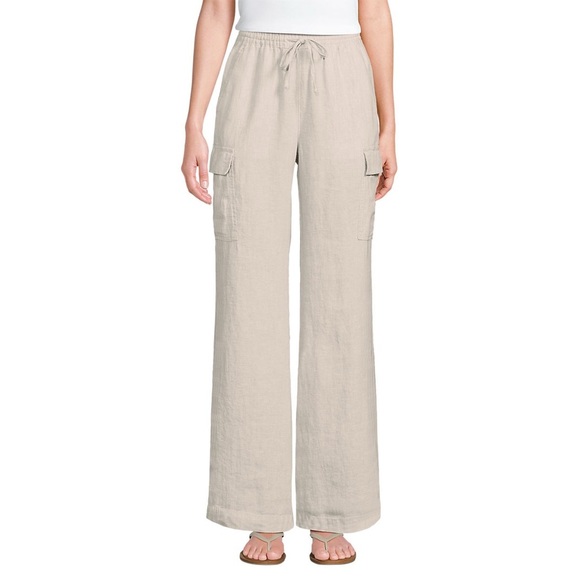 Lands’ End Linen cargo pants beige sand petite short putty drawstring straight
