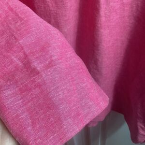 Lands End Linen Blend Top Tunic Sz 1X 3/4 Sleeve Pockets Notch Neck Red