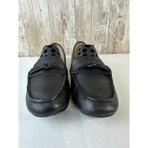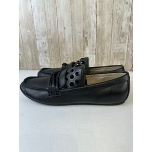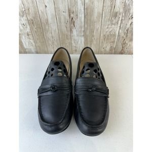 Lands' End Loafers Womens Sz 8.5 Black Leather Knotted Accent Slip On Cushioned