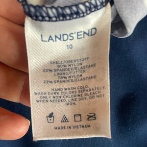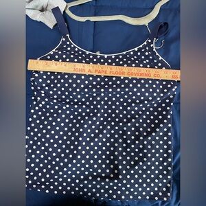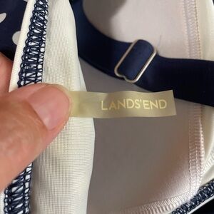 Lands End Long Blouson Scoop Tankini Dot Navy Blue White 478311 Swim Top Size 10