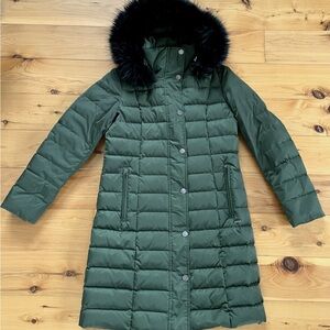 Women's Long Down Coat * Land's End * Removeable Fur Hood * Green * Sz XS (2-4)