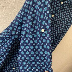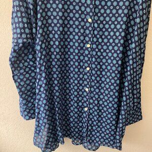 Lands End Long Sleeve Button-Up Tunic Shirt Dress L-XL Blue Floral Print Boxy La