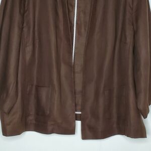 Lands' End Long Sleeve LINEN Blazer Size 26W Open Front Brown Jacket Pockets