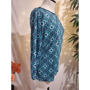 Lands End Long Sleeve Rash Guard UPF 50 Sun Protection Modest Swim Top Size S Geometric Mandala Print Turquoise Blue White