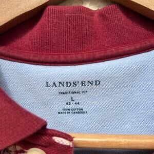 Lands’ End Maroon Hawaiian Print Polo Shirt Surf Palm Trees Men’s L