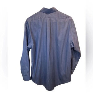Lands End Mens 16.5-34 Blue White Stripe Shirt Pinpoint Oxford Tailored Fit L/S