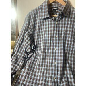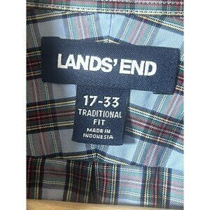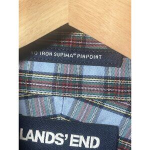 Lands End Men's 17 33 Button down Shirt 100% Supima Pinpoint Blue/red/ Plaid. J