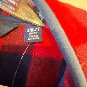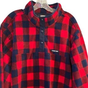 Lands' End Men's 3XL Red Buffalo Plaid Fleece Snap Neck Pullover Sweater