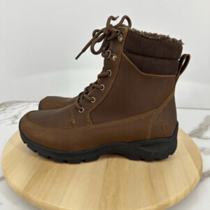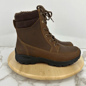 Lands End Mens 8.5D Leather All Weather Boots Brown Insulated Fleece Outdoor