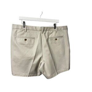 Lands End Mens Beige Cotton Traditional Fit Shorts, Button Closures, Back Pocket