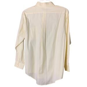 In excellent preowned condition with no tears, wear, or smell. Fabric does have two very small streaks, see closeup photo. Comes from smoke free home. Size 16 neck, 33” sleeve. Measurements laid flat: pit to pit 24”; waist 22.5”; hip 22.5”; shoulder to hem 30”. Boxy, minimalist, business casual, easy care.