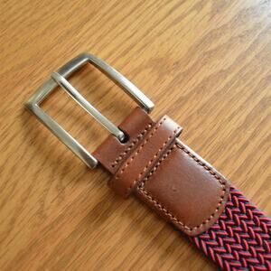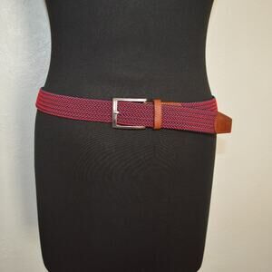 Lands' End Men's Elastic Braid Belt with Leather Tabs US 32 Red & Blue