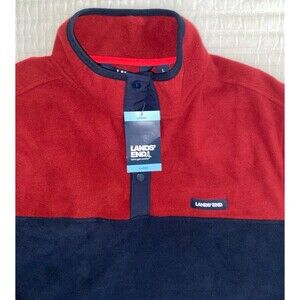 Land's End Men's Fleece Collar Long Sleeve Quarter Snap Button Up Jacket - Large