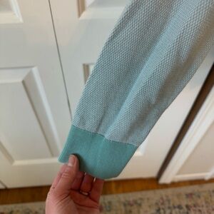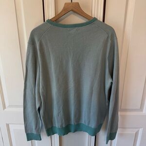 Lands’ End Men’s Green & White V Neck Long Sleeve Sweater 100% Cotton Size XL