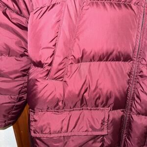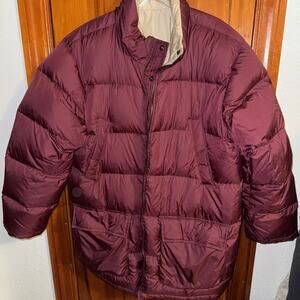 Lands End Mens L 42 44 Goose Down Puffer Coat Reversible Burgundy Tan NO Hood