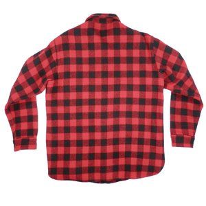 Lands End Mens L Wool Nylon Long Sleeve Red Black Buffalo Plaid Shirt Shacket