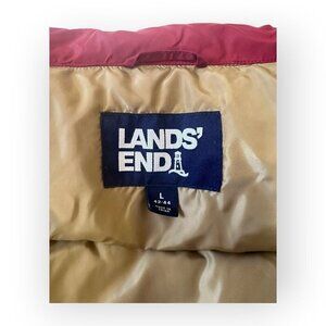 Lands' End Men's Large Down Puffer Vest, Quilted Snap/Full Zip 600 Fill. Red